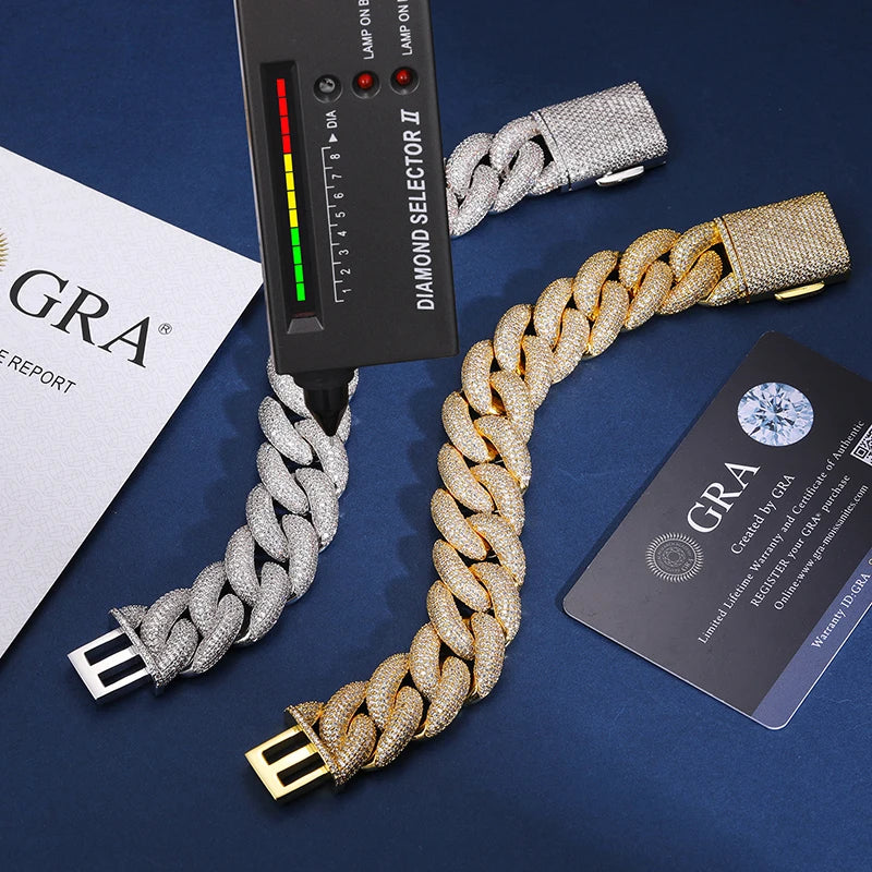 20mm 5 Row VVS Moissanite Diamond Bubble Miami Cuban Link Bracelet