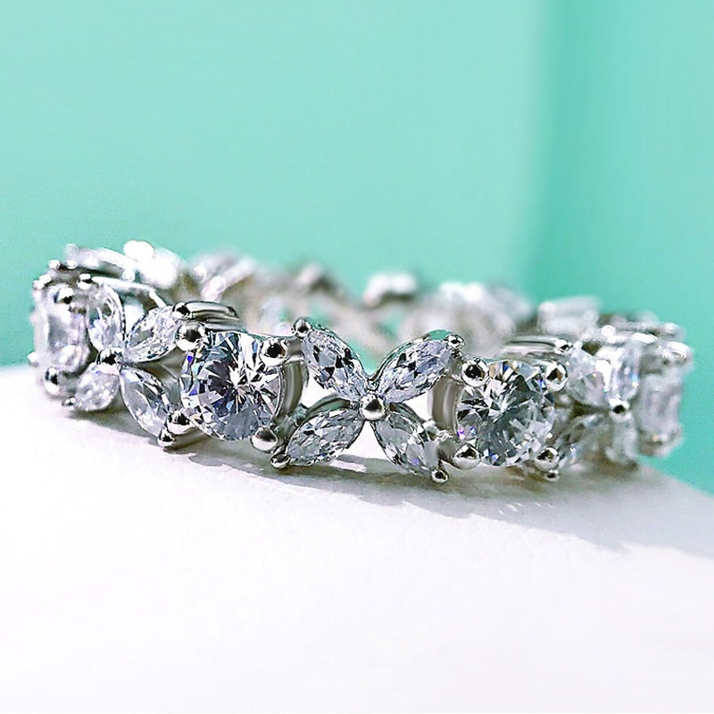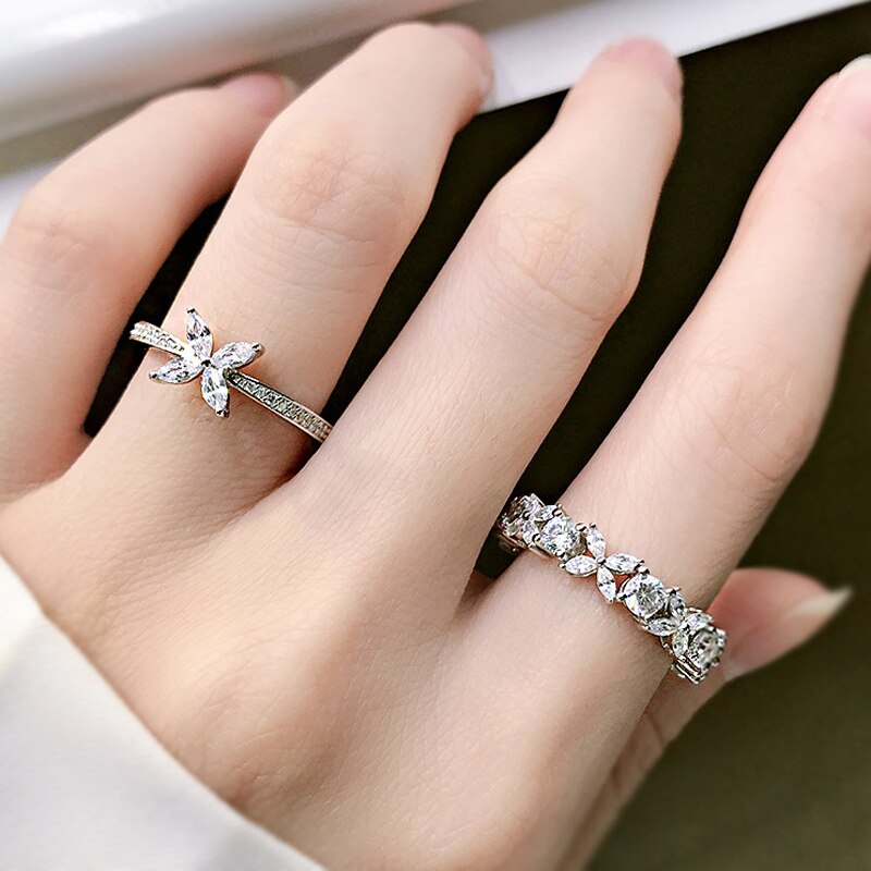 Sparkling Full High Carbon Dimond Zircon Flower Rings For Women